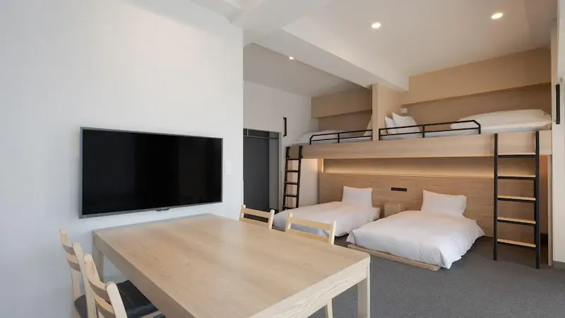 酒店提供各款大床、雙床房,可按需要選擇有加床的家庭房。所有房間為榻榻米地板,要在玄關脫鞋後才可進入房間。